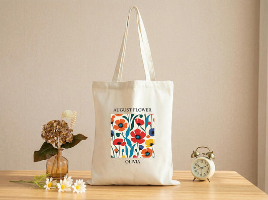 Canvas Tote Bag For Mom With Custom Name Floral Print, Meaningful Thank You Gift, Everyday Carry Bag, Birthday Or Mother’s Day Present