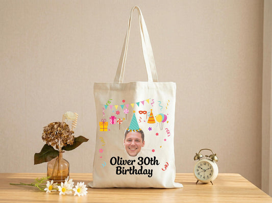 Canvas Tote Bag Custom Photo 30Th Birthday Gift Party Icons Personalized Name Reusable Shopper Bag For Women Men Friend